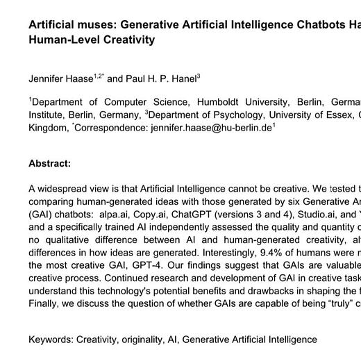The digital health tech market is valued at $1.3T. Large Language Models are more creative than 90% of humans. GPT-4 got connected to the internet via plug-ins and browser, which is a major development that we will discuss in greater detail. Many of the earlier problems with language models and simple computational tasks seem to be surmountable by allowing the language models to call previously developed, more specialized functions (a la Toolformer).
